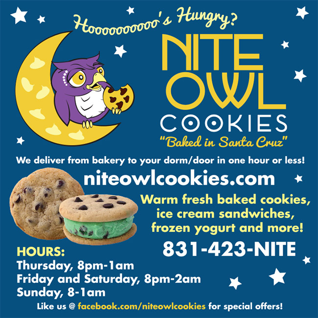 The new owner of Nite Owl Cookies came to me wanting to rebrand this late night homemade cookie delivery company. Based in Santa Cruz, she wanted it to appeal to the UCSC students, with a hip, pop, fun appeal.