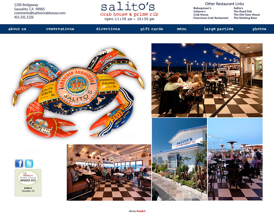 The owners came to me wanting a site to showcase their new restaurant. The basic structure follows their exisiting sites, but was stylized to fit the decor and aesthetics of this new crab house.